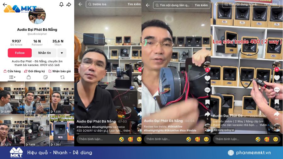 Khi rào cản lớn nhất về công nghệ đã được gỡ bỏ, anh Hạnh nhanh chóng khai thác hiệu quả các tính năng của MKT TikPro. Với anh, phần mềm chính là một trợ thủ đắc lực để giúp kênh bán hàng Audio Đại Phát Đà Nẵng của anh trở nên chuyên nghiệp hơn và dễ dàng viral.