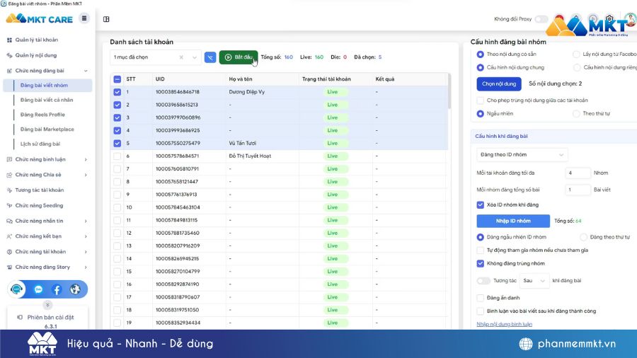 Dù vậy, anh Thanh vẫn không từ bỏ việc tìm kiếm giải pháp. Sau nhiều lần tham khảo, anh quyết định trải nghiệm MKT Care – phần mềm hỗ trợ quản lý tài khoản Facebook và tự động đăng bài, chia sẻ nội dung lên hội nhóm của Phần mềm Share bài.